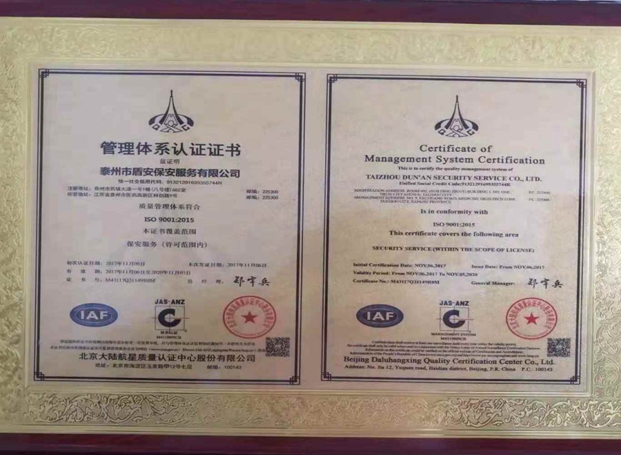 歡迎進入泰州市盾安保安服務有限公司官方網(wǎng)站!