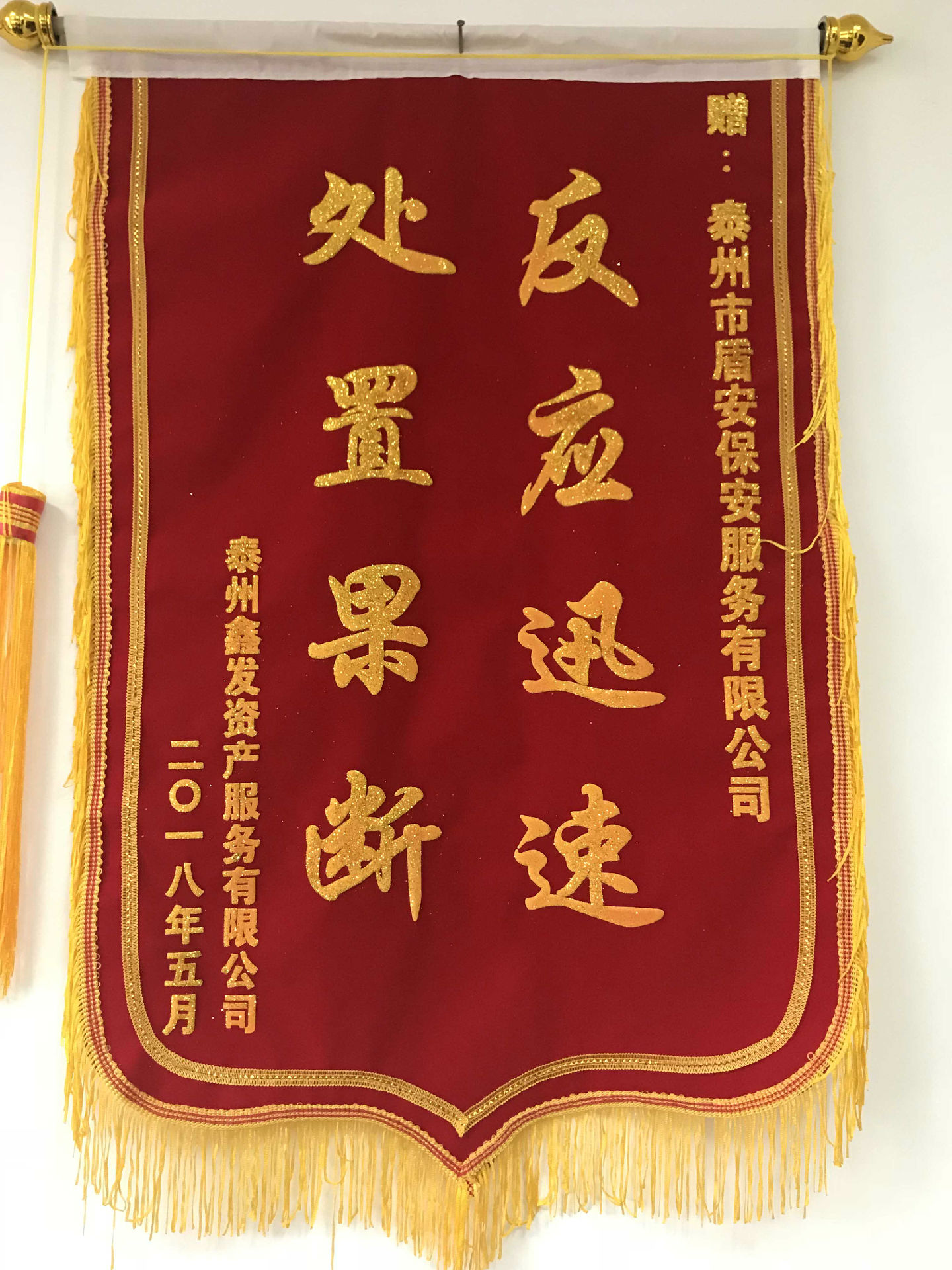 處置果斷、反應(yīng)迅速 (錦旗2018年5月)