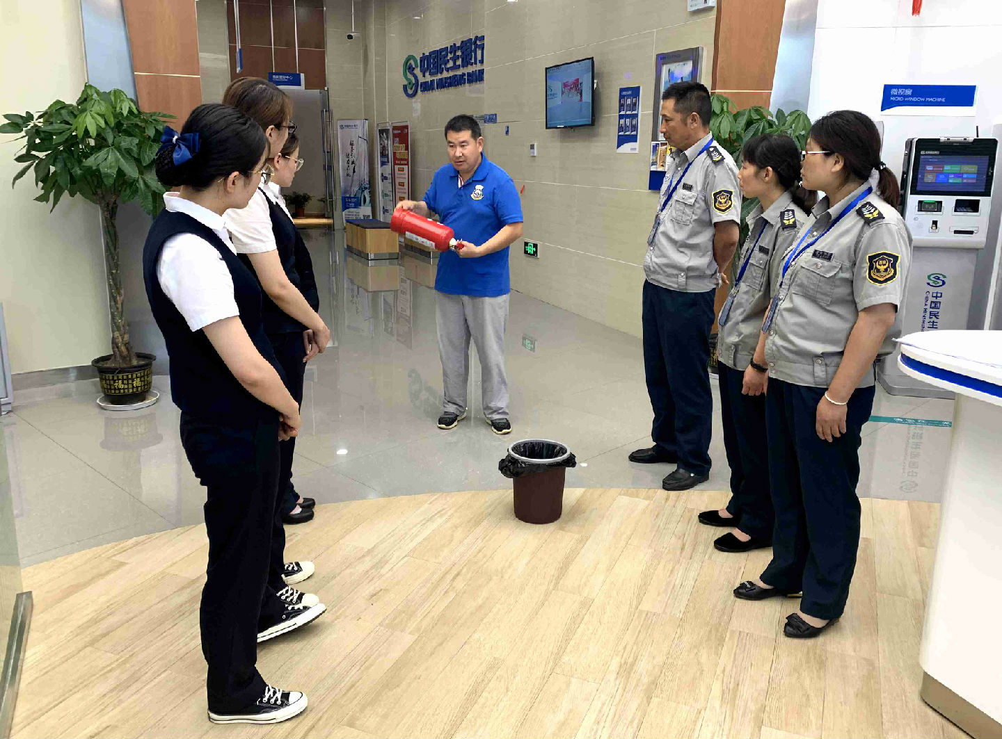2019年6月21日上午民生銀行開展消防培訓(xùn),分隊長梁學(xué)凱做使用滅火器示范,并進(jìn)行使用講解。