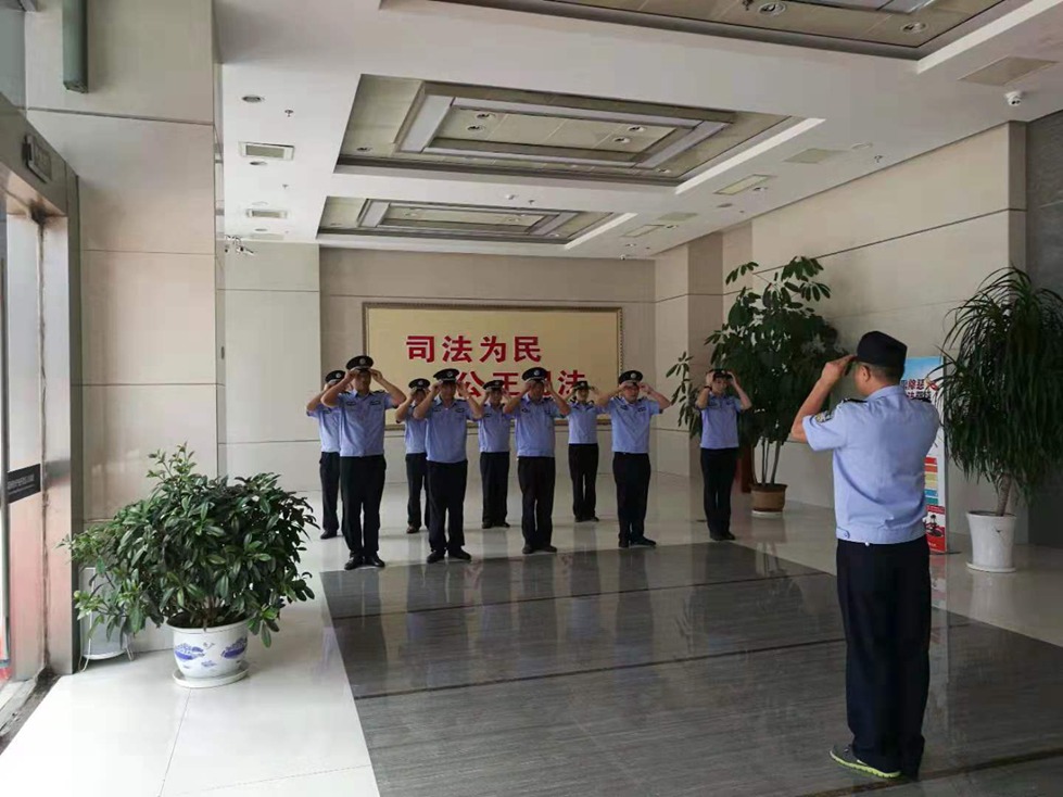 2019年8月7日,公檢法綜合分隊(duì)午休時(shí)間訓(xùn)練,學(xué)習(xí)。分隊(duì)長(zhǎng)梁學(xué)凱組織,3個(gè)班長(zhǎng)參加,應(yīng)到16人,實(shí)到12人,4人站崗,陳翔班長(zhǎng)做隊(duì)列示范。