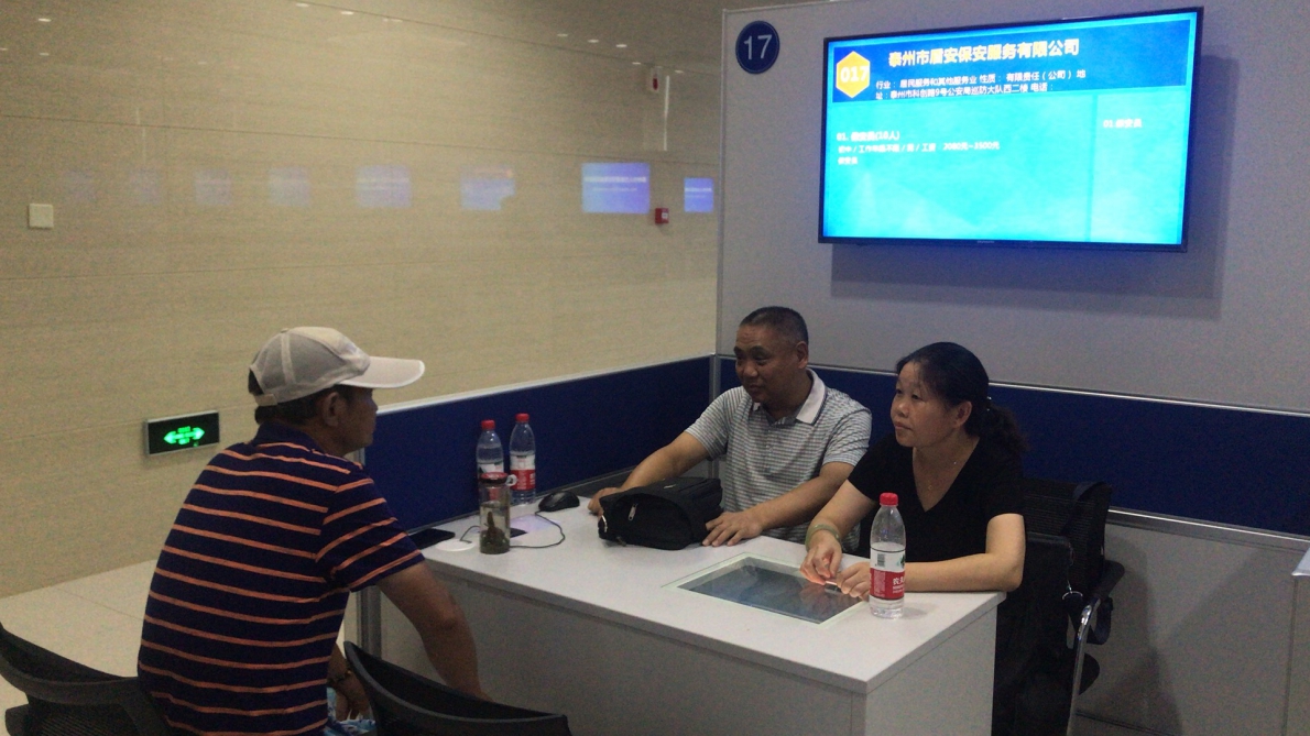 因公司業(yè)務(wù)擴(kuò)大,急需招聘符合客戶單位崗位要求的保安員數(shù)名,人力資源部主任吳云,親自到達(dá)社保局人力資源大廳現(xiàn)場(chǎng),對(duì)來(lái)應(yīng)聘人員進(jìn)行交談。
