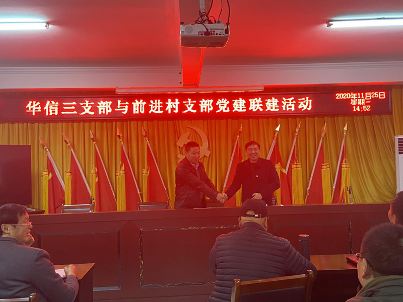 2020年11月25日,泰州華信藥業(yè)投資有限公司第三(服務(wù))支部與白馬鎮(zhèn)前進村進行了黨建聯(lián)建活動,泰州華信藥業(yè)投資有限公司第三(服務(wù))支部書記唐駿同志為大家上了一節(jié)生動黨課,最后兩支部一同觀看了抗疫視頻。