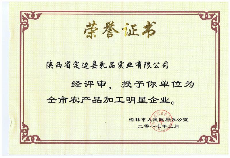 喜訊:我公司在2017年3月17日召開的榆林市全市農村工作會議上評為榆林市農產品加工“明星企業(yè)”