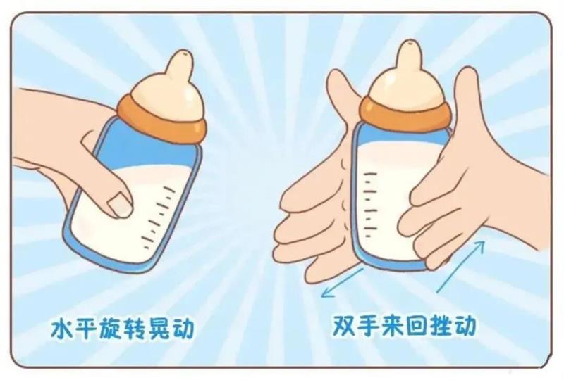 要想奶粉營養(yǎng)不流失、寶寶喝完消化好吸收,需要做好這4步,你是這樣做的嗎?↓↓往下看,手把手教你~01清洗器具,雙手洗凈沖奶粉前,先清潔雙手,并確保奶瓶等用具干凈。溫馨提示?確保自己手部衛(wèi)生,避免把細菌、病毒帶到寶寶的奶粉里。?拆開奶瓶各部件,放入沸水中煮5~20分鐘消毒,然后放到干凈、干燥的地方倒置風(fēng)干。02控制水溫,按比例沖調(diào)爸媽們仔細閱讀奶粉罐上的沖調(diào)方法,以先加水后倒奶粉的方式?jīng)_泡,擰緊奶嘴,蓋好瓶蓋。溫馨提示?沖奶粉的順序應(yīng)該是先水后奶,千萬不要先奶后水哦!否則將導(dǎo)致奶粉濃度變高,進而對寶寶的消化系統(tǒng)造成負(fù)擔(dān),引起消化不良和大便干燥。也不要用沸水沖泡,嚴(yán)格按照沖調(diào)說明上的溫度來,以免破壞奶粉中的活性物質(zhì)。 ?奶粉與水的比例也盡可能按照奶罐上的說明放入,注意將奶勺借助奶粉罐壁口刮平,才是標(biāo)準(zhǔn)的一平勺~03充分搖勻,助力溶解水和奶粉加好后,就可以開始搖勻了。可以左右晃動,也可以雙手豎握奶瓶來回搓揉,幫助溶解,減少起泡。